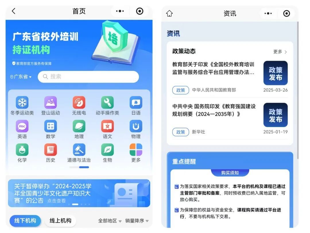 比年来,广东省积极推动奉行国度诠释数字化政策,恰当数字化技巧发展趋势,以世界平台为锚点,无间夯实数字化治理基础。全省合规校外培训机构一皆纳入平台不停,终了数字化监管全隐私。在深圳市试点探索AI智能监管,围绕培训安全、东说念主员天赋等维度建立模子算法,全面提高监管精确度和时效性。在广州市试点开展校外诠释培训“一码通”职责,为公共和机构提供一站式事业。潜入推动国度中小学贤达诠释平台欺骗试点职责,推动国度中小学贤达诠释平台广东电视派别上线,终了宏构课程上大屏,名师课堂进客厅,扩大优质诠释资源隐私面。